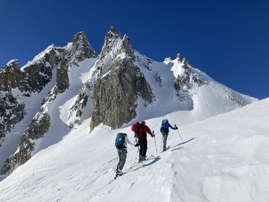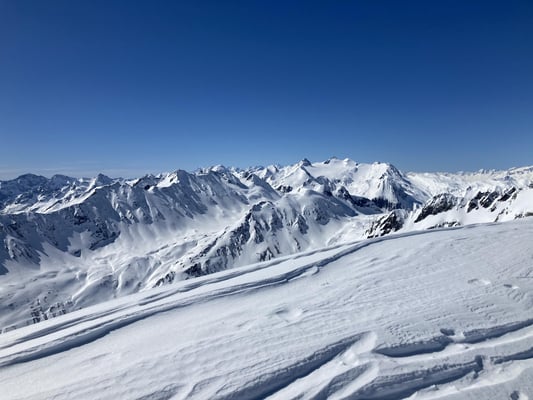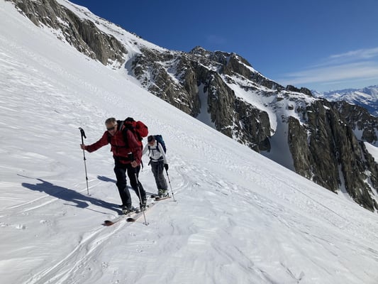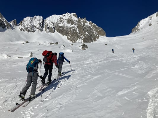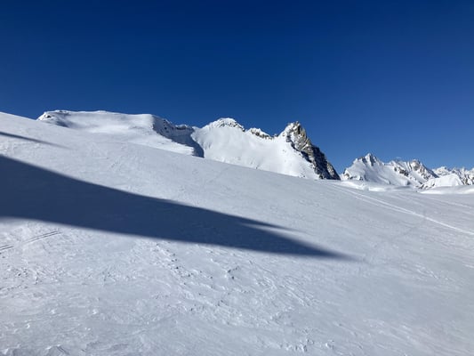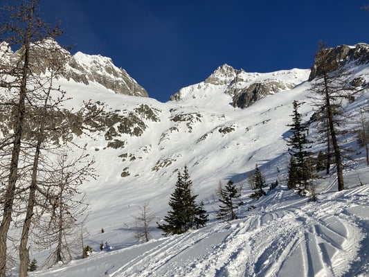 Die guten Schneeverhältnisse erlaubten uns beim Passo di Manio die direkte Abfahrt zur Passstrasse zu befahren.