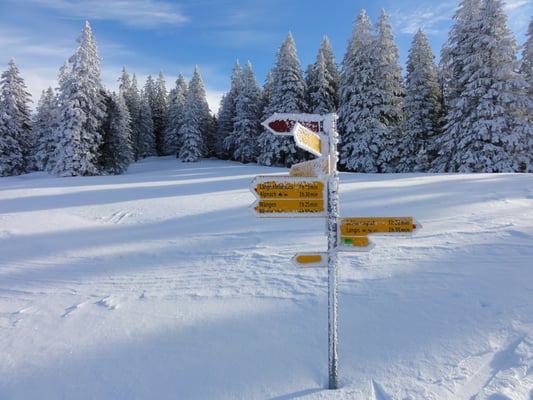 Es war ein sehr kalter Morgen am 16. Januar 2024, doch die Wetteraussichten mit einem Mix aus Wolken und Sonne klangen vielversprechend. Und so machte sich die 7-köpfige Seniorengruppe freudig auf zur Skitour Richtung Chrüzliegg. Unter der Leitung von Ruedi Bühlmann gings ab der Glaubenbergstrasse bergwärts durch die wunderschön verschneite Landschaft. Im rund zweistündigen Aufstieg war Gelegenheit, über dies und jenes zu plaudern, den Blick in die bereits besonnte weite Umgebung schweifen zu lassen oder mit dem rhythmischen Gleichschritt mitzugehen. Das heutige Tourenziel die Schrotenegg empfing die Skitourengruppe dann im wärmenden Sonnenlicht und mit schneebehangenen Tannen. Genau richtig für die wohltuende Rast bei toller Aussicht.