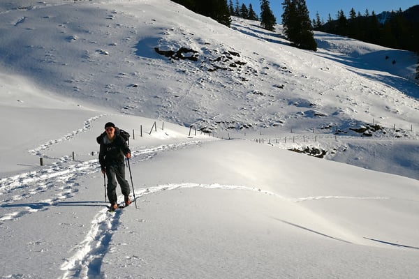 Bei nebligem Wetter machten wir uns am Sonntag, 02.02., um 7:30 Uhr mit dem Postauto auf den Weg Richtung Sörenberg. Bei der Haltestelle Hirsegg sind wir ausgestiegen und starteten unsere Tour. Schon bald kamen wir durch die Nebeldecke und hatten wunderschönen Sonnenschein. Auf dem Weg Richtung Hächle, übten wir fleissig Spitzkehren. Diese konnten wir auch direkt beim letzten Steilhang anwenden. Oben angekommen haben wir unseren Lunch gegessen und genossen das schöne Wetter. Bei der Abfahrt hatten wir die Möglichkeit frischen unbefahrenen Pulverschnee zu durchqueren. Fast ganz unten war die Schneemenge eher prekär. Daher haben wir unsere Ski abgezogen und sind das letzte Stück gelaufen. Um etwa 13:30 Uhr sind wir bereits wieder in Schüpfheim angekommen. Wir haben noch gemütlich etwas zusammen getrunken und machten uns dann alle auf den Heimweg.
