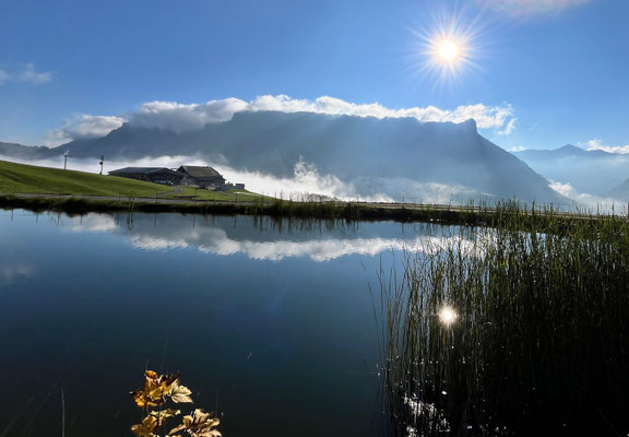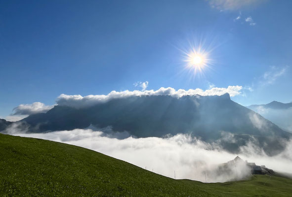 Mystischer hätte unsere heutige Tour auf der Marbachegg nicht beginnen können. Sonne, Nebel und blauer Himmel, zierten die Schratte in wunderschönsten Farben. Über die Wittenfärren und über den langen Rücken des Kadhusgrates, vermochte für kurze Zeit, der Nebel sich etwas stärker durchzusetzen, was zu wunderschönen Fotos verhalf. Weiter, über den Imbrig, wanderten wir zum unbekannten Wassertossen, wo wir bei wärmender Sonne eine Rast einlegten und die sich dort bietende Aussicht genossen. Vorbei an der Alp Gärtlen gelangten wir bald zum spektakulären Lauizug und Schibehüttli und nach einigen vernichteten Höhenmetern schlussendlich ins Kemmeriboden, wo das Postauto schon bereitstand und uns zum Ausgangspukt Marbach zurückführte.
