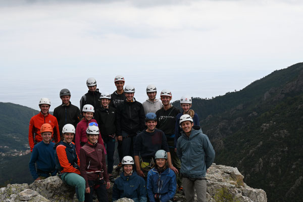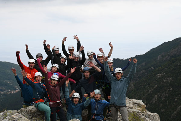 In den frühen Morgenstunden ging es los, trotz Nebel und Kälte war die Freude riesengross. Am Bahnhof Entlebuch hiess es warten, um gemeinsam ins Kletterlager zu starten. Die Autos wurden gepackt und der Kofferraum kontrolliert, so dass unterwegs auch keiner eine Tasche verliert. Hungrig gab es auf dem Weg den ersten Halt, wo man für Kaffee und El Tony eine ordentliche Summe bezahlt. Die restliche Fahrt kurzweilig verbracht, denn es wurde gesungen und gelacht. Auf dem Camping sind die Zelte schnell aufgebaut und das Material an seinem Platz verstaut. Die eine und andere vergessene Sache fiel dabei auf, der Decatlon eignete sich perfekt für einen Kauf. La dolce Vita wird in Italien grossgeschrieben, so wurde der Nachmittag mit Gelati und einer Abkühlung im Meer vertrieben. Nach den feinen Älplermagronen der Leiter, ging es mit der Abwaschparty weiter. Abgerundet wurde der Abend mit Kaffee und Spiel, so dass jeder müde ins Bett fiel.