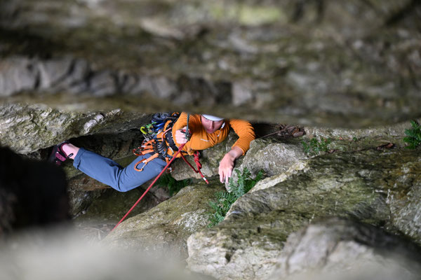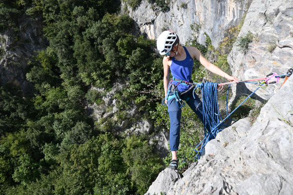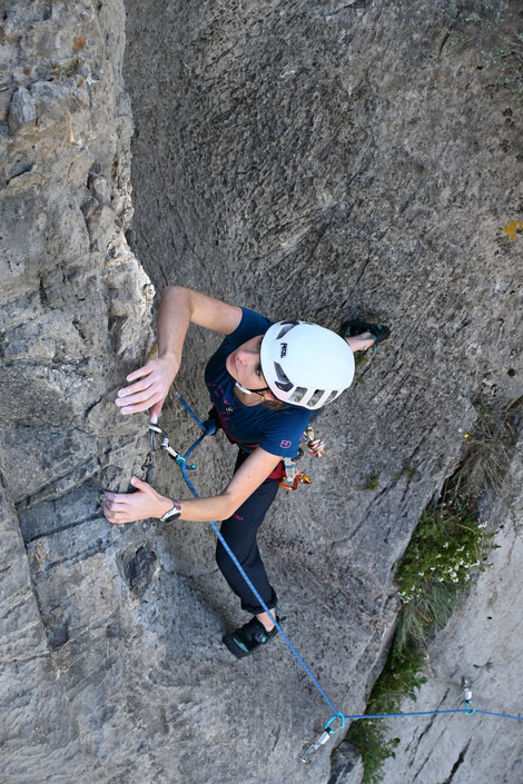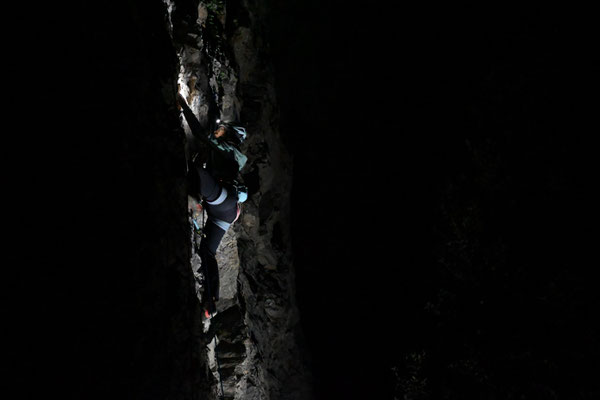 Nach dem Zmorge dachten wir es sei Zeit, so machten wir uns für die Abfahrt bereit. Doch das hatte niemand geahnt, Gabriel hatte ein Workout geplant. Die drei Badefreunde der Gruppe kamen zurück und waren vom Workout-Anblick entzückt. Gegen Mittag ging die Fahrt dann los und die Vorfreude auf die Night-Session war gross. In Seilschaften gut verteilt, wurde geklettert und wieder abgeseilt. Mit viel Material und Expressen bestückt, ist auch Lea der Aufstieg gut geglückt. Bei Kaffee und Stirnlampenlicht wurde der Abend am Felsen verbracht, und uns schliesslich mit Gesang auf die Rückfahrt gemacht.